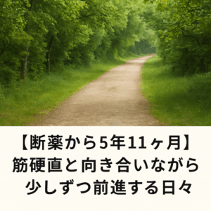 50代男性。現在、自立支援医療や障害基礎年金2級、手帳2級の社会福祉制度を活用しながら自宅療養中。 2000年よりベンゾジアゼピン系薬(レキソタン、ロヒプノールなど)を服用。 2015年、40代前半に常用量依存と過労の影響で倒れたことを機に、自宅での療養生活を開始。当時服用していたベンゾジアゼピン系薬の有害性に気づき、断薬を決意。 2019年7月3日にレキソタンを断薬。現在、断薬から5年が経過し、筋肉の回復をはじめ身体全体の健康を取り戻しつつあります。 療養生活を送りながら、社会復帰を目指して日々前向きに過ごしています。